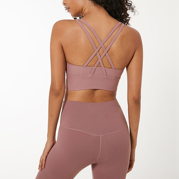 クロスバックストラップピンクベストショーツブラ